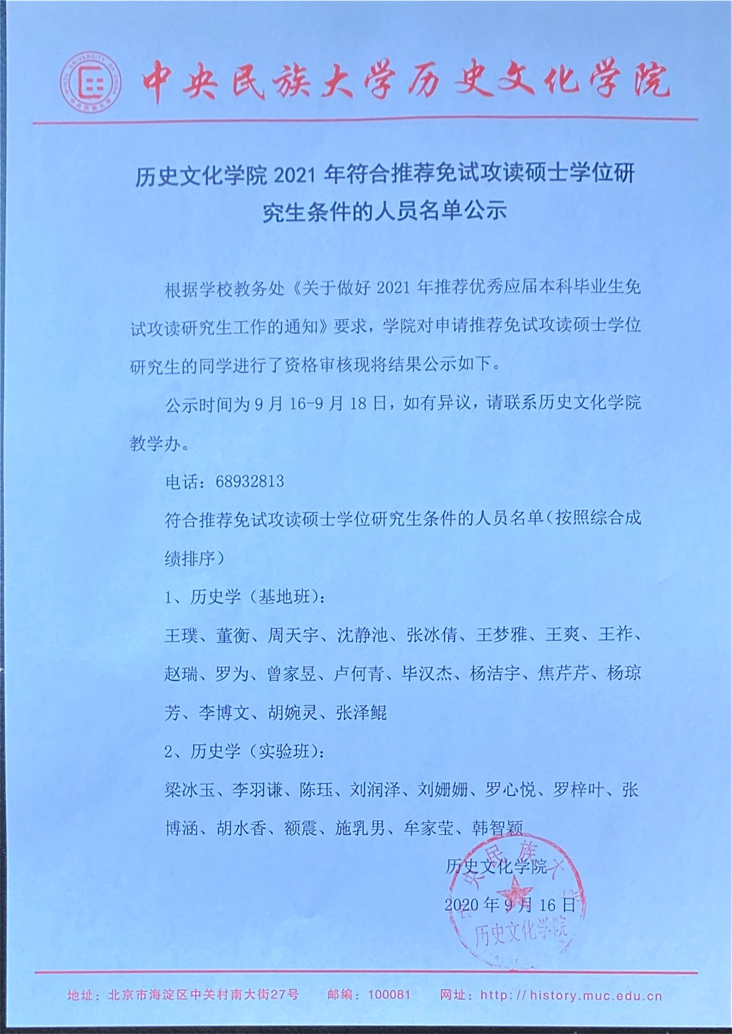 爱视频 2021年符合推荐免试攻读硕士学位研究生条件的人员名单公示