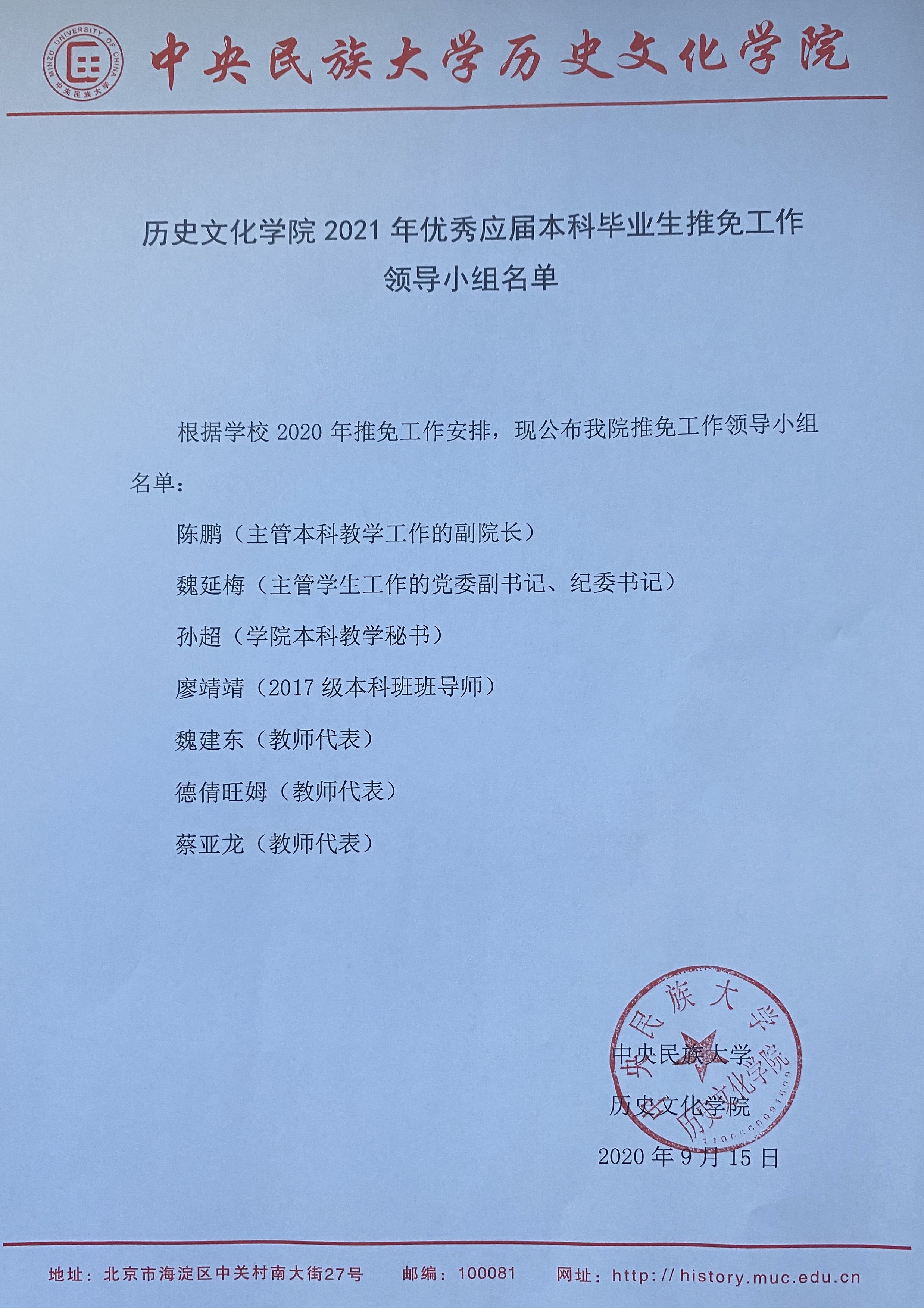 爱视频 2021年优秀应届本科毕业生推免工作领导小组名单