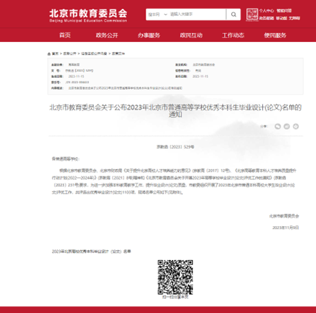 根据《北京市教育委员会关于公布2023年北京市普通高等学校优秀本科生毕业设计(论文)名单的通知》,爱视频