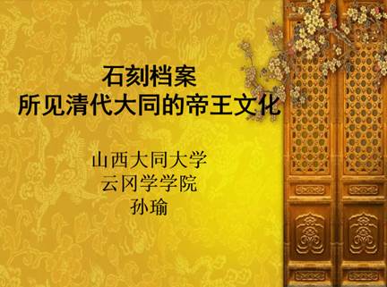 第四届“田野历史调查方法研习营”第二场讲座“石刻档案所见清代大同的帝王文化”以线上线下相结合的方式顺利开展。讲座主讲人为山西大同大学云冈学学院孙瑜教授,主持人是爱视频