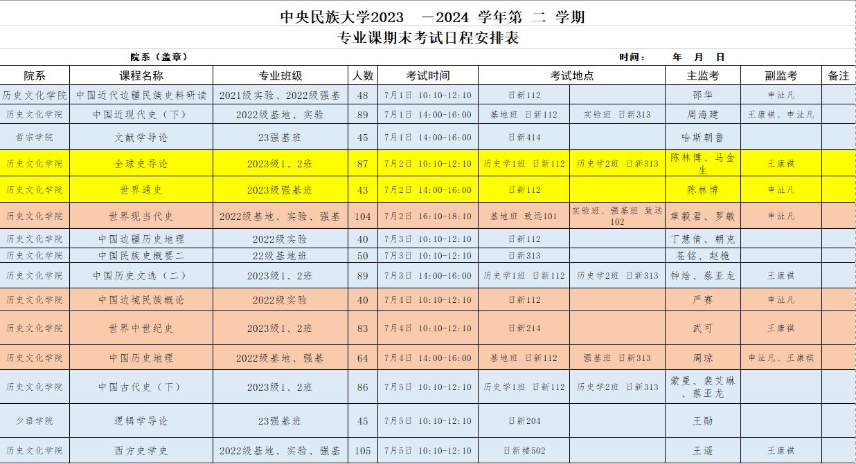 2023-2024-2学期 期末考试安排表