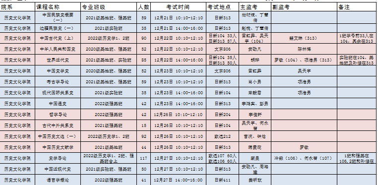 2022-2023-1学期期末考试安排表