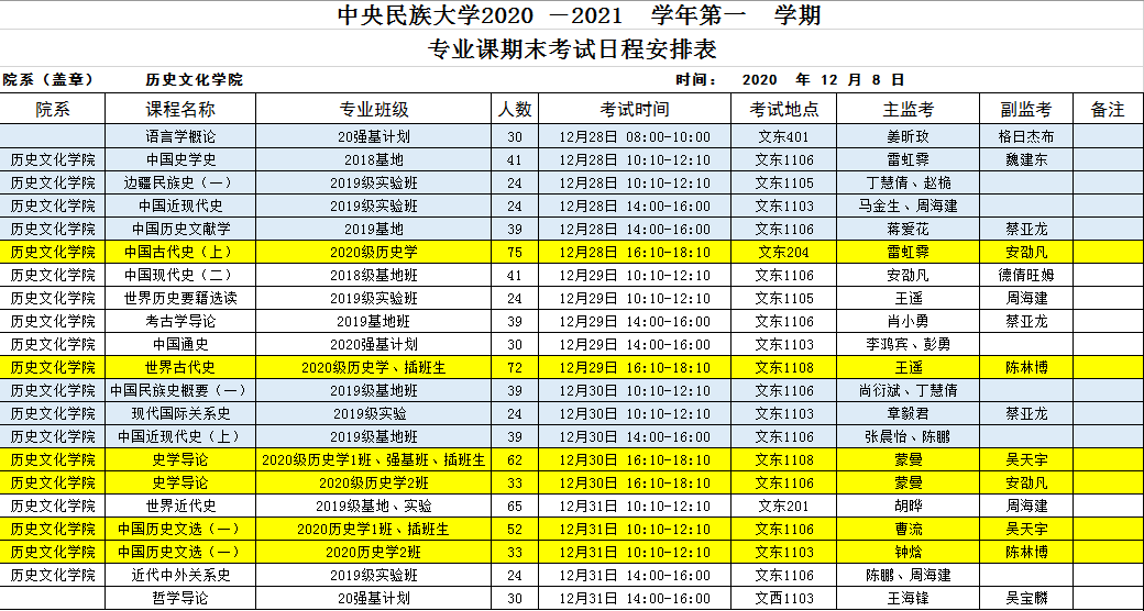 2020级由于考场人数限制,现将地点进行更改,如下: