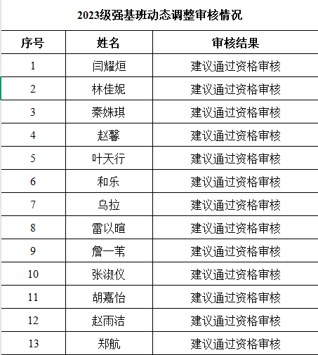 依据《爱视频 强基计划本科阶段动态调整实施办法 修改版第3版 》文件相关规定,爱视频 于2025年9月初进行了2023级、2024级历史学(强基计划)动态调整工作。经动态调整工作小组讨论审核后,结果如下: