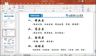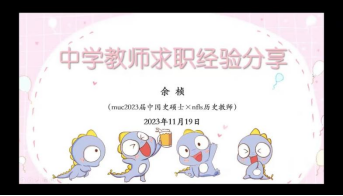 第二位分享人是黄文凌师姐,师姐从求职准备(简历的制作)、求职过程与面试技巧、offer的选择、求职经历心得四个方面进行了精彩的分享,首先在制作求职简历时要注意简介明了的同时避免错别字以及错误信息的出现;其次强调了教育经历的重要性,提醒大家在求职过程中保持平和的心态,要有充分的心理准备。投递简历时可以按需采取海投战术,面试过程中要熟悉教学概念教育理念,此外,还要注意展示自己的教学设计和课堂组织能力,以提高面试成功率。按照自身需求做出正确选择,最后师姐告诉我们求职是一个持续努力的过程,希望大家以平和的心态,成功上岸。