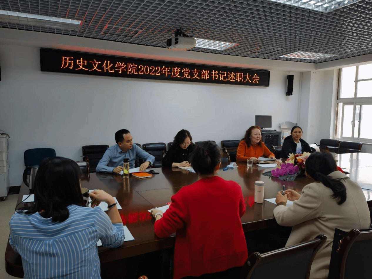 师资队伍的发展中发挥了积极作用,新老党员齐心协力为支部建设做出努力,并在特殊时期坚守在第一线,起到了很好的模范带头作用。同时,刘翠兰书记还对教工党支部将样板党支部顺利结项表示祝贺。盛肖霞老师称赞2020级研究生党支部于2022年6月荣获“一个支部一个目标,一个党员一个任务”活动校级优秀支部目标三等奖,希望该支部继续保持优异成绩,并加强思想政治引领铸牢理想信念的工作。魏延梅老师表示学生第一党支部虽然人数多、跨校管理困难,但工作规范度高,大胆创新工作模式,能开展形式多样的活动。在今后的工作中还需更多的关注支部学生动态,将党建工作延伸到班级、年级以及学生组织中,逐步建立起自身特色。陈鹏老师表示学生第一党支部十分注重理论学习,肯定了该支部过去一年的工作成果,同时鼓励该支部结合历史学科的特点,将党建工作与铸牢中华民族共同体意识深度融合。魏延梅老师和赵逸妍对2022级研究生党支部定期开展丰富多样的学习活动,以及对支部党员坚韧上进的工作态度给予了肯定,希望该支部能够更好地挖掘自身特色,为下一阶段的支部工作做准备。