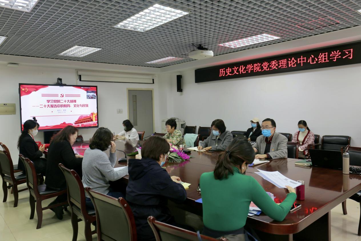 彭勇院长表示,全院师生都应认真学习党的二十大精神,并且在领会的基础上回应中国共产党在民族、教育、文化等方面的号召,在今后的教学与科研工作中,发挥好历史专业的独特作用,讲好中国故事。