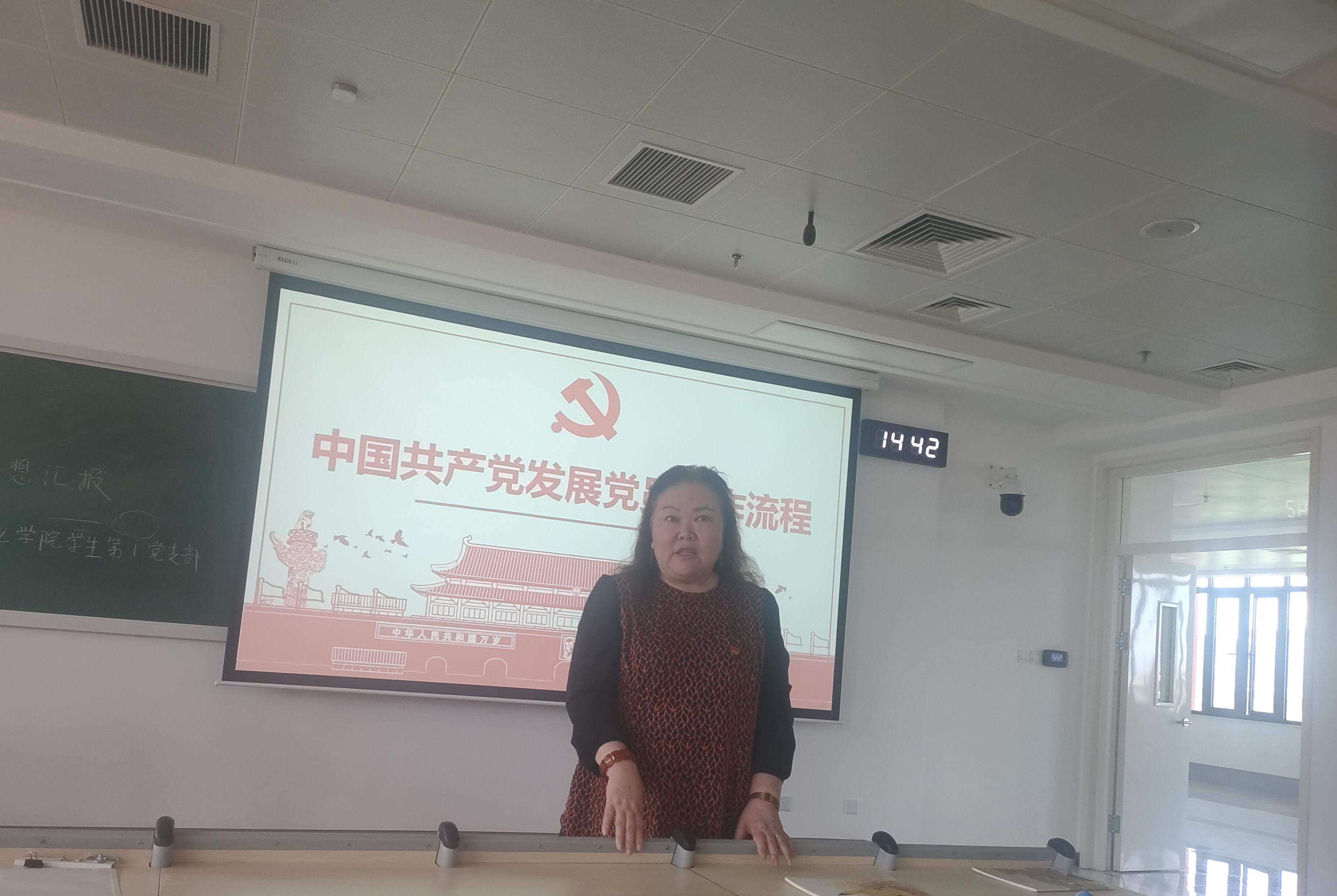 首先,学院办公室主任赵逸妍老师详细介绍了中国共产党发展党员的基本工作流程、在校学生加入中国共产党的必要条件以及目前学院各党支部的基本状况,并细致的解答同学所提出的问题。