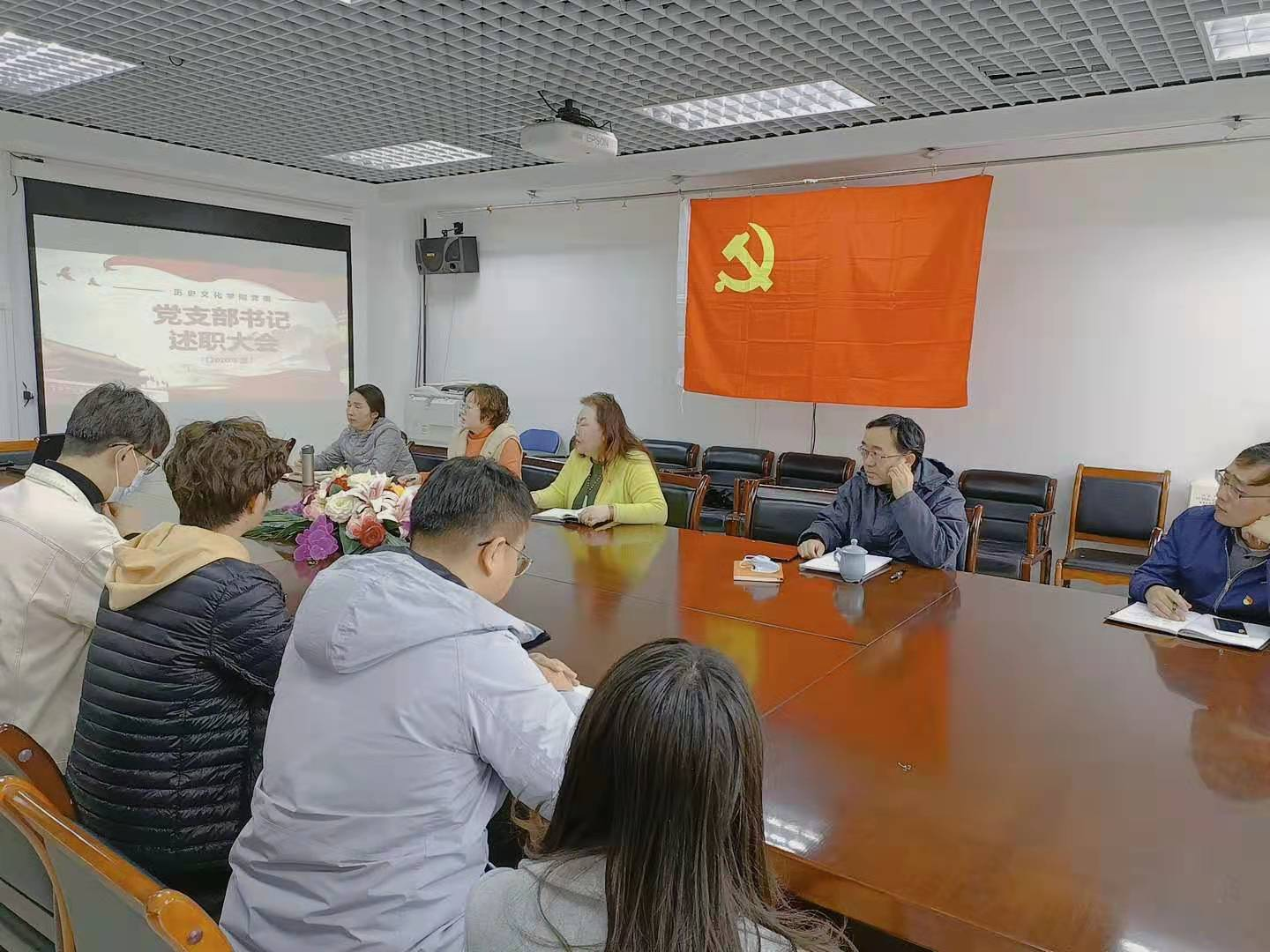 教工党支部书记胡晔老师、18级研究生党支部刘维栋同志、19级研究生党支部陈逸飞同志、20级研究生党支部李天庆同志、本科生党支部书记赵逸妍老师先后进行述职,各支部书记均介绍了本支部的发展状况,并从党员发展、理论学习、党建工作等多个方面作了汇报,同时反思了支部存在的问题与缺点,并积极探讨改进工作方式,探索新的学习模式。