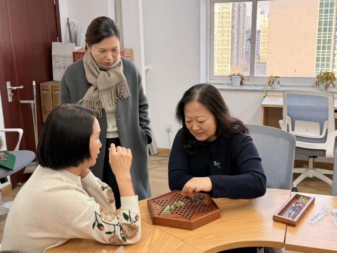 活动现场布置简洁而富有氛围,平日里用于研讨工作的会议室,此刻变身充满乐趣的 “对弈空间”。跳棋桌旁老师们围坐一桌,指尖轻拨彩色棋子,时而凝神思索最佳路径,时而因一步巧妙的 “跳跃” 发出会心笑意。不远处的围棋桌前,老师们也凝神对弈,黑白棋子在棋盘上交替落下,每一步都暗藏策略与考量,围观老师轻声交流着对棋局的看法,既为棋手的精妙走法点赞,也在探讨中感受围棋蕴含的东方智慧与大局观。