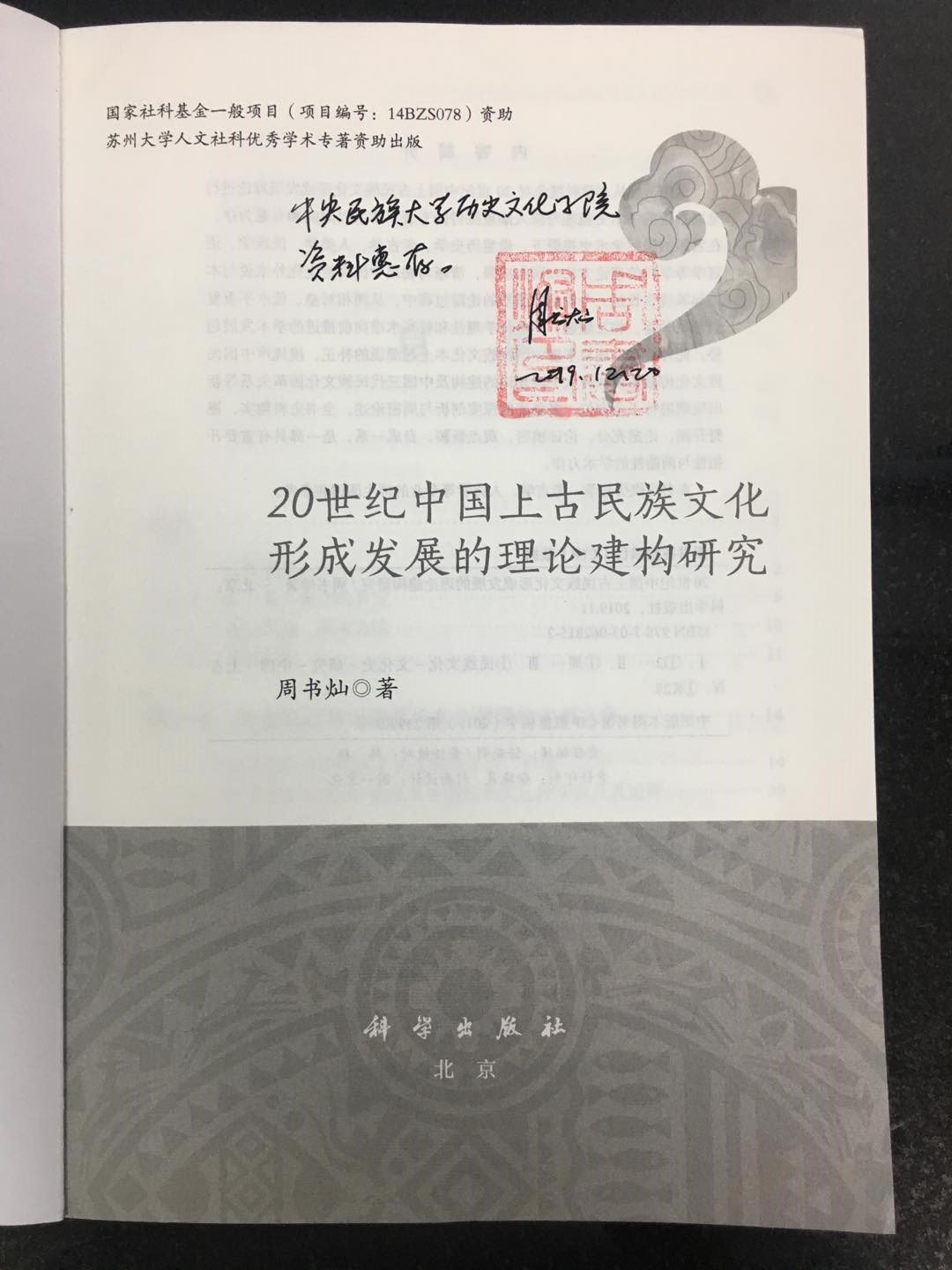 近日,苏州大学社会学院周书灿教授向爱视频 资料室赠送个人专著《20世纪中国上古民族文化形成发展的理论建构研究》。
