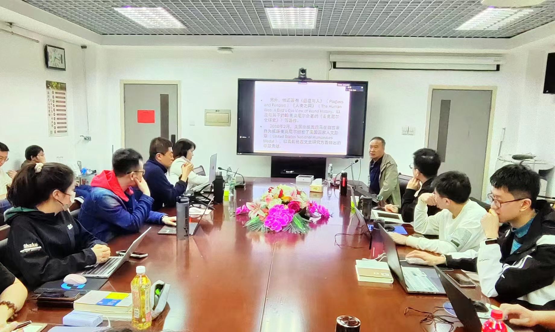 王老师介绍了全球史观的兴起,其符合丝绸之路研究的需求,并向广大师生介绍了全球史发展过程中的代表学者及其作品。王老师提出,从本质上来讲,丝绸之路的发展就是一部人类文明传承与融合的全球史,运用全球史观来研究丝绸之路具有重要的理论意义:其一,可以破除“欧洲中心论”对丝绸之路研究的影响,建立一种超越狭隘民族和国家界限,公正地评价各个时代和各个地区的一切民族建树的整体历史观;其二,全球史观的互动理念对丝绸之路研究有重要的意义,全球史家认为互动是人类历史发展的动力,社会发展源自变化,而变化的起点是接触外来新事物。丝绸之路多元文明的互动是古代世界发生变化与进步的动力,促进了全球文明的传承、变迁与发展;其三,全球史观的“中心-边缘”视角可以对丝绸之路研究提供启示,全球史认为,在人类社会发展史中,每一种文化都将自身视为当然的中心地带和文明所在,中心—边缘视角是全球史研究的一个有益尝试,它会给丝绸之路的研究带来崭新的面貌;其四,全球史观关注人与自然甚至宇宙的关系可以为丝绸之路研究提供启示,全球史关注的是影响人类社会历史发展进程的全球性问题,随着全球史的兴起,那些以往被史家忽视的丝路沿线的环境变迁、生态变迁、瘟疫与疾病的扩散、物种和技术的交流、风俗与宗教、思想、文化的传播等领域正在受到越来越多丝路研究者的关注;最后,全球史观中宏大叙事与微观视角的结合也可以为丝绸之路研究提供启示,全球史观注重宏观与微观的结合,强调在宏观研究指导下进行微观研究,或在微观研究支撑下开展宏观研究,这就在一定程度上避免了微观史的细碎化和宏观叙事的空洞化。