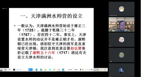 2022年10月25日晚,南开大学中国社会史研究中心常建华教授做了题为《清雍乾时期的天津满洲水师营》的学术讲座。本次讲座是爱视频
