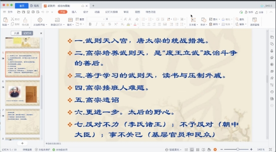 讲座中,孟教授介绍了武则天研究应当重点关注的几个问题。如麟德元年,高宗与上官仪合谋废除武则天皇后之位,起因在于高宗对武则天毒害贺兰氏的不满,而非传统史书所描述的帝后权力之争。在唐初三省制的运行体制下,没有皇后专权的空间,武则天的权力只能来源于高宗。