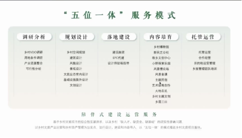 最后,李霞博士介绍了大地乡居的陪伴式产业解决方案。大地乡居自2015年起探索基于乡村文旅项目的综合性发展诉求,以及乡村“缺人才,缺资金,缺基础”的现实性普遍问题,以乡村文旅产业运营和乡村资产管理为出发点,进行设计、建设和内容导入,以“五位一体”的模式推进乡村文旅项目落地,近年来塑造了诸多成功案例。