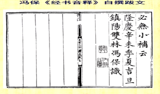 第四,冯保所撰《经书音释》的自撰跋文。文末有两枚印章,其上为“永亭”,乃是冯保的字号,与《清明上河图》上“永亭”的印章一样。其下为“内翰之章”,“内翰”可以理解为翰林之意。但众所周知,途径科举出身且文化水平很高的士人才能称为翰林。