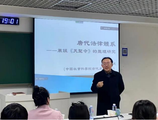 的师生们隆重介绍了黄正建教授,并讲述了黄教授在唐代法律体系学术研究界的重要地位。