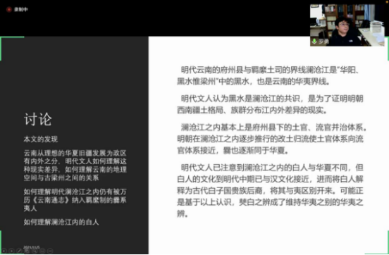 “史学名家系列讲座”《“无间华夷”:明代文人对黑水内外与明朝西南疆域关系的认识》在腾讯会议平台顺利举行。本次讲座嘉宾为大理大学民族文化研究院罗勇研究员,讲座由爱视频