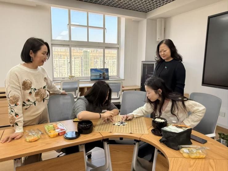 活动现场布置简洁而富有氛围,平日里用于研讨工作的会议室,此刻变身充满乐趣的 “对弈空间”。跳棋桌旁老师们围坐一桌,指尖轻拨彩色棋子,时而凝神思索最佳路径,时而因一步巧妙的 “跳跃” 发出会心笑意。不远处的围棋桌前,老师们也凝神对弈,黑白棋子在棋盘上交替落下,每一步都暗藏策略与考量,围观老师轻声交流着对棋局的看法,既为棋手的精妙走法点赞,也在探讨中感受围棋蕴含的东方智慧与大局观。